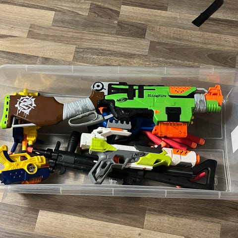 Tästä edulliseen hintaan nerf minigun tyyppinen lelupyssy sekä lisäpanoksia. Toimii hyvin, ei sisällä paristoja.