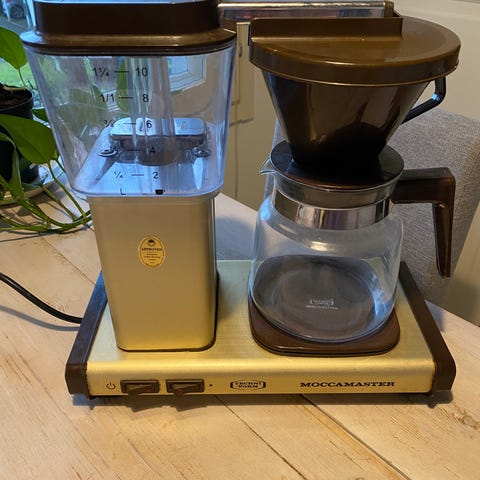 Siisti valkoinen Moccamaster. Ostettu 2013, edelleen keittää oikein hyvin. Kaikki osat ehjiä. Ei aikakatkaisua. Sisäpesut hoidettu valmiiksi seuraavalle. Nouto Tuusula.