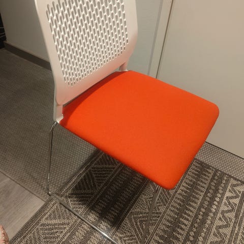 Vähällä käytöllä ollut toimistotuolin apuväline. Pitää ryhdin suorana ja mobilisoi lantion seutua. Tarpeeton, kun ei etätöitä