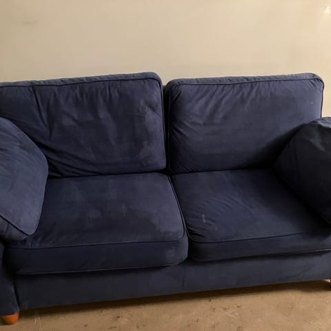 Sohva muuten siistikuntoinen mutta vuodevaatelaatikon kulmasta pentukoira hiukan nakertanut palaa 🥹, Saa peitettyä esim viltillä , eikä juurikaan käytössä näy . Muuten siisti ja ehjä , pikkukoira talous 🐶. Sohva on osissa joten kuljetus helpompaa .