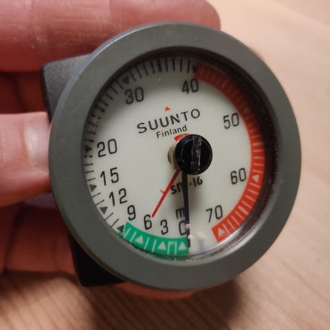 Suunto sm-16 syvyysmittari rannemalli, 70 metriin asti.