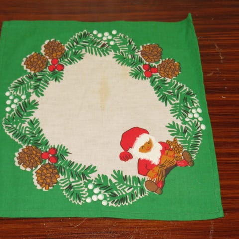 60-luvun tonttuliina. Pieni reikä, mutta muuten hyväkuntoinen ja erittäin siisti. 63 x 57