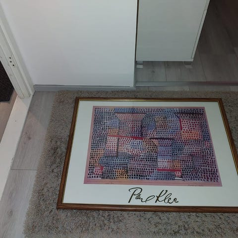 Hyvä kuntoinen taulu erikseen ostetun julisteen kanssa