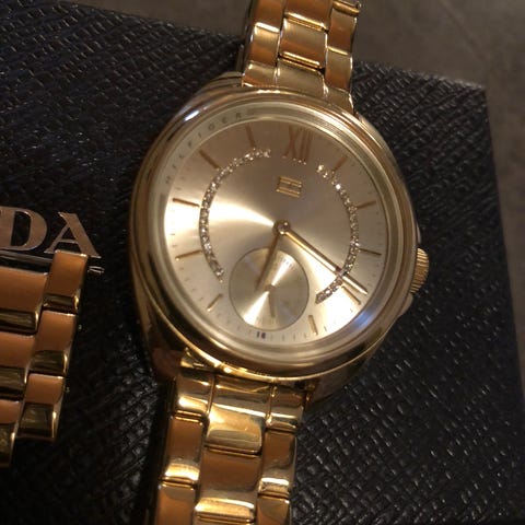Myydään tarpeettomana naisten Tommy Hilfiger Ava rannekkello. Kello on valmistettu ruostumattomasta teräksestä. Hopean värinen samppanjan värisellä kellotaululla.