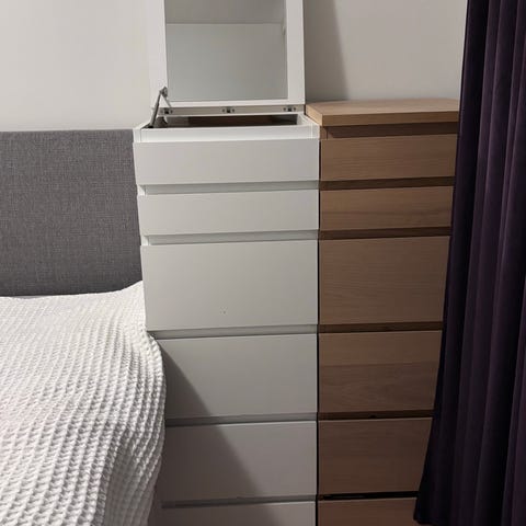 Salatuista elämistä ostettu kaunis hopeinen Vogue - lipasto / meikkipöytä, joka ollut muistaakseni Salattujen elämien Day Spa:ssa aikoinaan. Päällystetty käsin hopealehdillä joten on ulkonäöltään uniikki.
