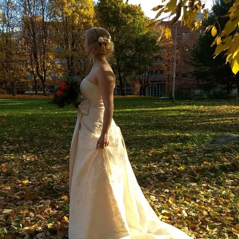Myydään Ateljé Katarinasta ostettu häämekko mallissa Minja. Mekkoa on käytetty kerran ja sen jälkeen on tehty kemiallinen pesu.