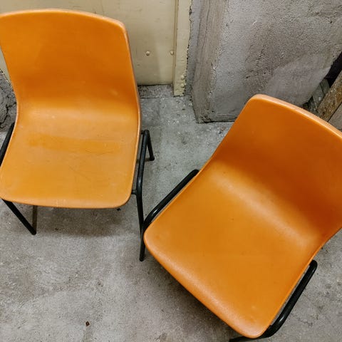 Taitettavat tuolit samettipäällisellä. Söpö roosan väri. Täysin ehjät ja vähän käytetyt. Ollut meillä varatuoleina jos tulee isompi porukka syömään.