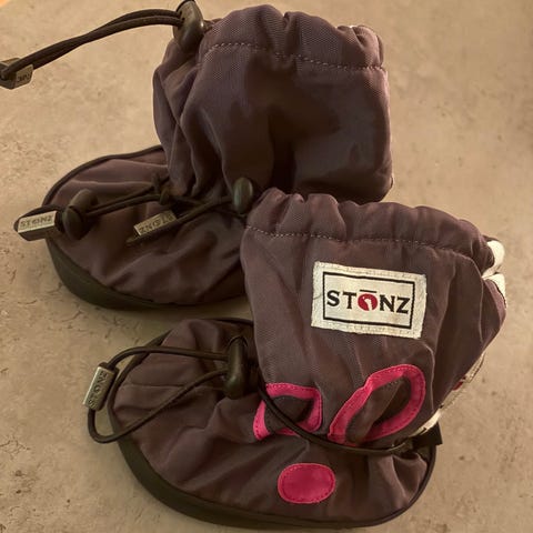 Pehmeät marjapuuron väriset Stonzin talvitossut sydänkoristeilla.