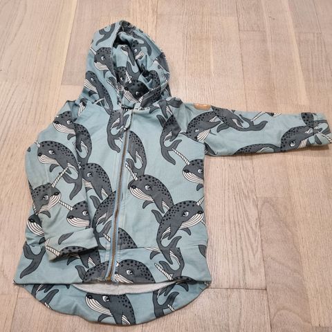 Pinkfong haihuppari, kuvassa kulumaa, vetoketjun vetimessä värikulumaa, pinnassa haitua, ehjä ja tahraton. Viimeinen kuva vastaa oikeaa väriä parhaiten.