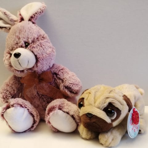 Pupu pehmolelu, vaaleanpunainen ja valkoinen, lasten lelu.