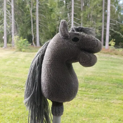 Suloinen, musta keppari valkoisella läsillä, lyhyt keppi, siistikuntoinen. Riimun saa mukaan.