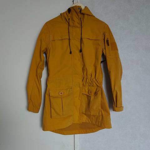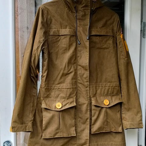 Takki on lähes käyttämätön. Vahattu, ja ollut päällä pari kertaa ja todettu epäsopivaksi. Tätä väriä ei enää saa uutena. Tyylikäs, kestävä, tuulenpitävä ja vettä hylkivä kovan käytön vaate.