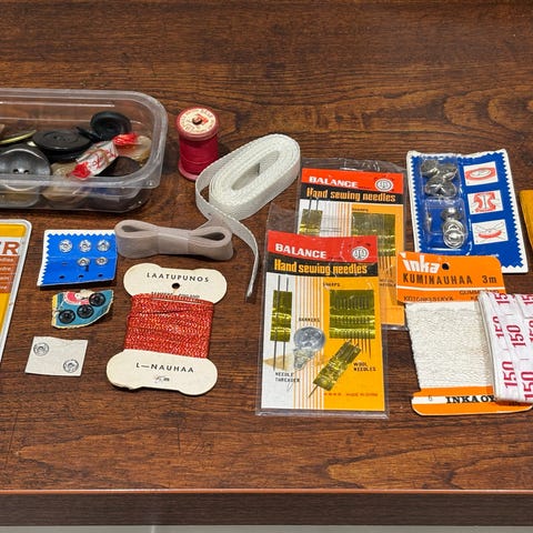 Singer (luultavasti) ompelukoneen osat ja tarvikkeet.