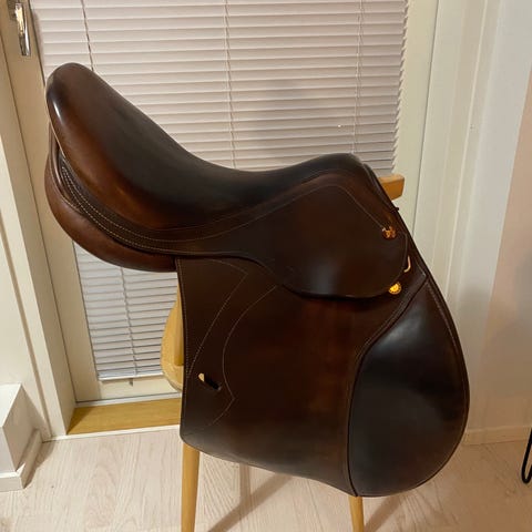 Prestige Top Dressage Appaloosa 16”/34. Muistaakseni kavennettu kerran, eli leveys nyt 33.