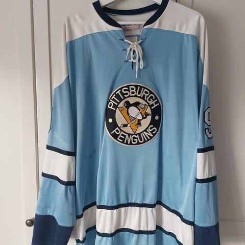 Starter Jagr 68 NHL Pittsburgh Penguins jääkiekkopaita, koko XL. Paita on valkoinen, musta ja keltainen, valmistettu 100% polyesteristä. Sopii jääkiekon seuraajille ja fanituotteeksi.