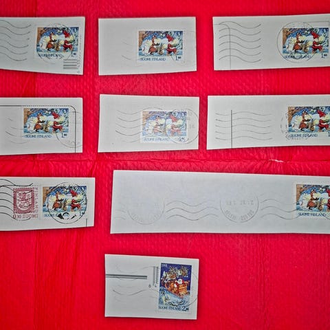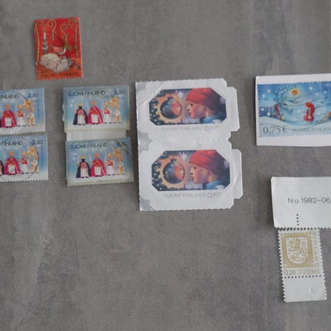 14kpl leimattuja (yksi leimaamaton) vuoden 2001 joulupostimerkkejä, aiheena tonttutyttö. Suunnittelija Pekka Vuori, nimellisarvo 2,50mk.