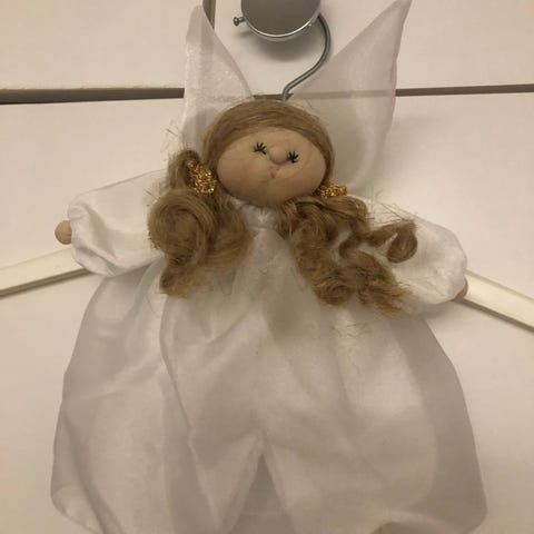 Puinen sydänenkeli, ”suojelusenkeli”, lahjapaketin koriste ym.