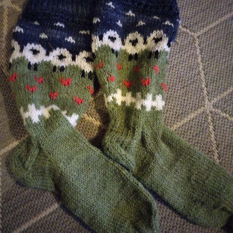 Käsintehty naisten Late lammas sukat Nalle villalangasta.
