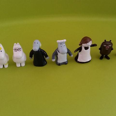 Muoviset Muumifiguurit Muumimamma, Muumipappa, Muumipeikko, Niisku, Niiskuneiti, Muikkunen, Hemuli, Hattivatit, Nipsu ja Pikku Myy.. Käytetty hyvä kunto.Yhteishinta.