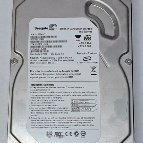 3.5" WD1600BB-55RDAO, 160 Gb, 7200 RPM.