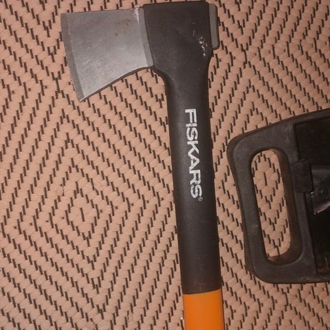 Vähän käytetty Fiskarsin pikkukirves teräsuojalla esim. risukeittimen kaveriksi. Nouto Vaasan keskustasta.
