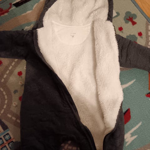 Lämmin ja pehmeä haalari 3-6 kuukautta+lämmin hattu ja saappat.
