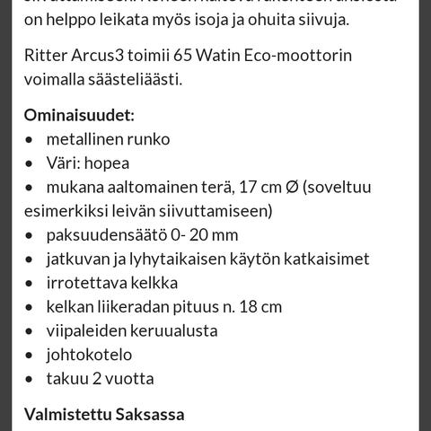 Yleiskäyttöinen viipalointikone leivälle, juustolle, leikkeleille