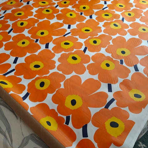 28€/metri. Marimekko Mini Unikko punainen/aniliini.