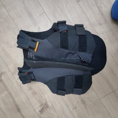 Airowear laadukas turvaliivi ratsastukseen. Käytetty vain pari kertaa, joten kunto on moitteeton. Tarrat vyötäröllä ja olkapäissä - helppo säätää. Vetoketju edessä. Pehmeä täyte. Musta. Koko L4 short.