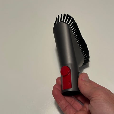 Dysonin varsi-imurin harjasuutin, soveltuu pölyn ja pienten roskien puhdistamiseen erilaisilta pinnoilta. Suuttimeen on kiinnitetty harjaksia, jotka auttavat irrottamaan pölyä ja likaa.