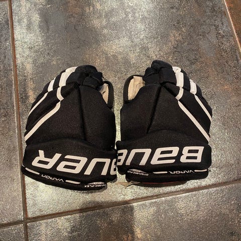 Bauer käsineet jääkiekkoon mustavalkoiset, koko Jr 10" 25cm. Sopii n. 6-10 vuotiaalle pelaajalle.