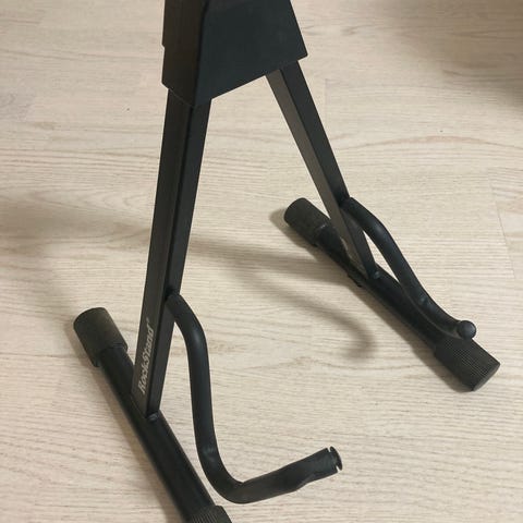 Myydään Rockstand 9 kitaran teline. 7 paikkaa on vuorattu kankaalla niin että niissä voi pitää myös nitrolakattuja kitaroita. Pehmusteissa pientä painaumaa, mutta muuten toimii hyvin.