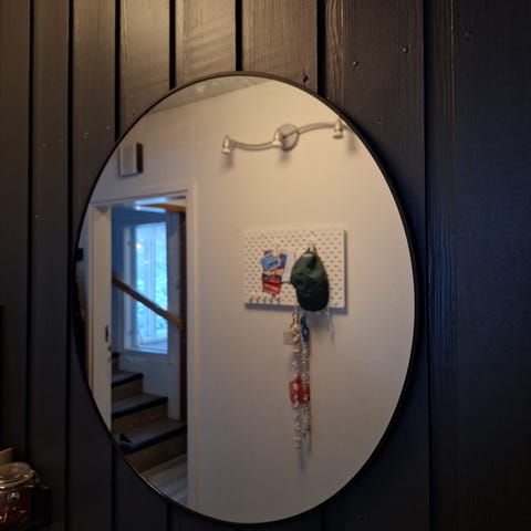 IKEA ONNI peili, jossa on rottinkikehys. Peilin halkaisija 25cm halkaisi 60cm. Sopii seinäkoristeeksi eri tiloihin, esimerkiksi olohuoneeseen tai makuuhuoneeseen.