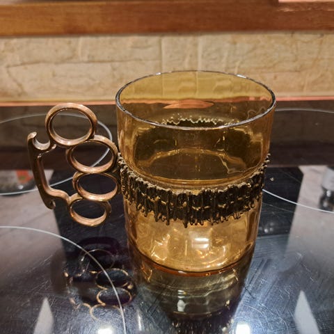 Pentti Sarpanevan ”nyrkkirauta”-tuoppi. Hänen nimikirjaimet löytyvät pohjasta. Sekä nimi nyrkkiraudasta. Pronssivanteen laatassa on nimikirjaimet (isäni) kaiverrettu, mutta ne saa halutessaan pois. Korkeudeltaan tuoppi on 11 cm. Halkaisijaltaan 9,5 cm. Täysin ehjä.