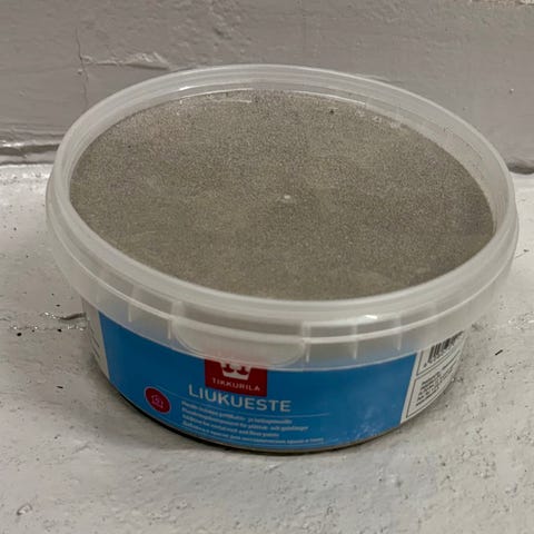 Solmaster Liukuestehiekka ja Tikso. Molempia täys purkki ja vähän otettu toisista purkeista (noin 2/3 jälellä) Liukuestehiekka soveltuu liukkauden estämiseen ja Tikso on tarkoitettu seinällenostoihin. Tuotteet ovat valkoisissa purkeissa, sisältö ja käyttöohjeet näkyvät purkkien kyljissä.
