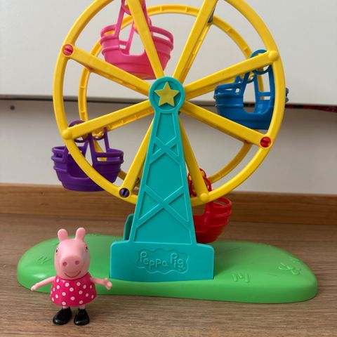 Pipsa Possu -sarjaan kuuluvia hahmoja ja Pipsa Possun maailmanpyörä. Hyvässä ja siistissä kunnossa olevia.
