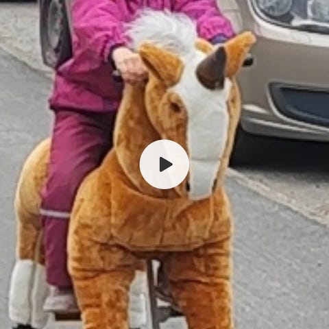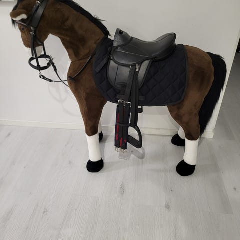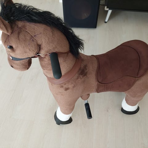 Leikkihevonen, joka kulkee pienen ratsastajan tehdessä jaloilla liikettä kahvoihin. 1 kpl 110 e . Myynnissä kaksikin jos tarpeen. Valjaat tallessa ainakin toisella.