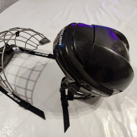 Bauer junior jääkiekko maalivahdin maski/ kypärä, pään koko 530-570 mm. Kypärä on ostettu uutena ja pidetty kerran pihapeleissä. Mukana alkuperäinen pakkaus.