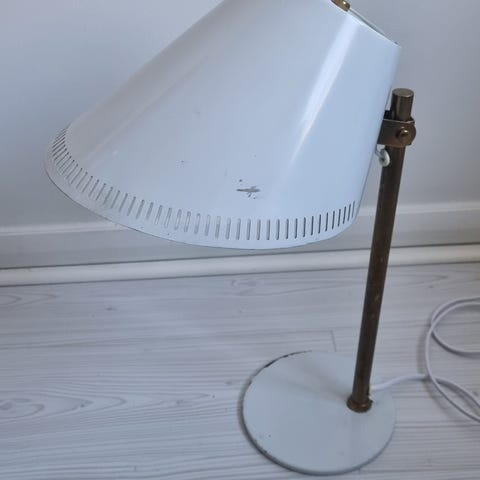 Kuvankaltainen (tai vastaava) tauluvalaisin, messinkinen ja 1950- tai 60-luvulta. Esimerkiksi Idman, PSO, Orno, Taito.