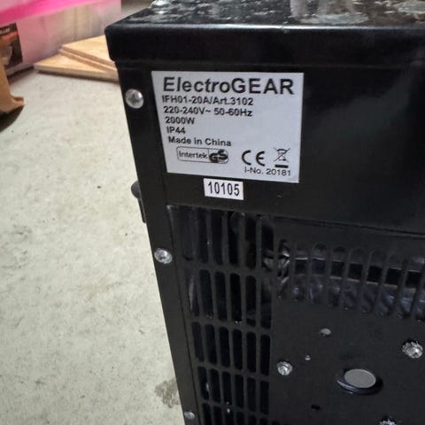 Vanha mutta toimiva lohkolämmitin. Kiinnitysteline mukana