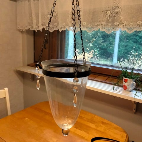 Lasiastian mitat halkaisija 12 cm, korkeus 18 cm, koko lyhdyn korkeus 35 cm.