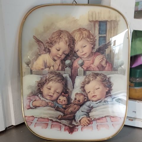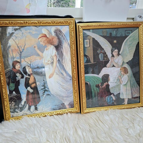 Vanha kehystetty ihastuttava SUOJELUSENKELI -TAULU Mitat: Kehys 45 x 35