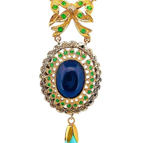 Antiikkityylinen art decó -riipusketju, vuosilta 1930–1940, keltakultaisesta 9kt kullasta ja hopeasta.