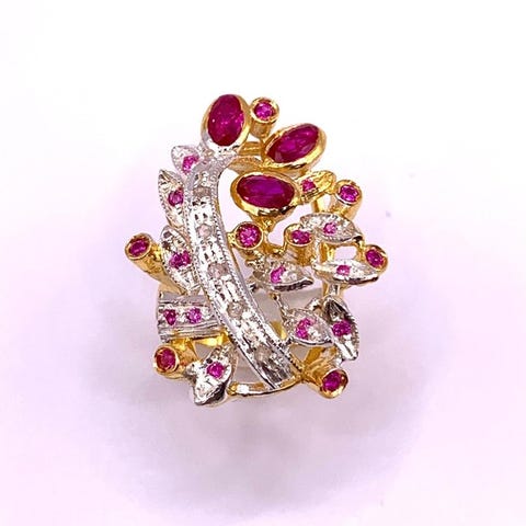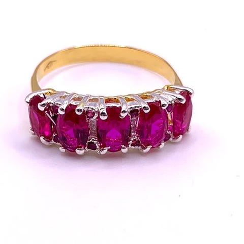 Nämä kivet ovat ovaaleiksi leikattuja rubiineja, jotka on asetettu hienostuneeseen sormukseen.