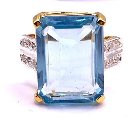 Elegantti Riviera-trilogiasormus 9 karaatin keltakullasta, viktoriaanisen tyylin vintage-jäljennös vuosilta 1900–2000.