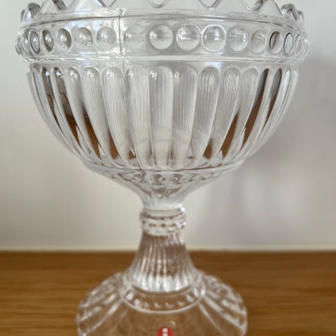 Iittala Mariskooli kirkkaasta lasista. Kulhon muotoilu ja koko soveltuvat jälkiruokien tarjoiluun.