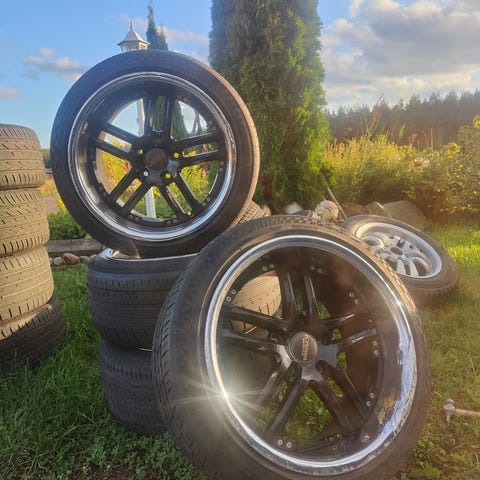 Myydään kohtuu hyväkuntoinen Predator Racing Wheels vannesarja ja hyvillä kesäkumeilla.