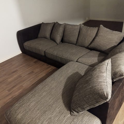 Istuintyynyt ovat jo parhaat päivänsä nähneet, mutta sohva on edelleen käyttökelpoinen.