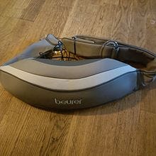 Beurer hierontavyö harmaa, jossa on ohjauspaneeli ja verkkovirralla toimiva virtalähde. Sopii rentouttavaan lihashierontaan eri kehon osissa.