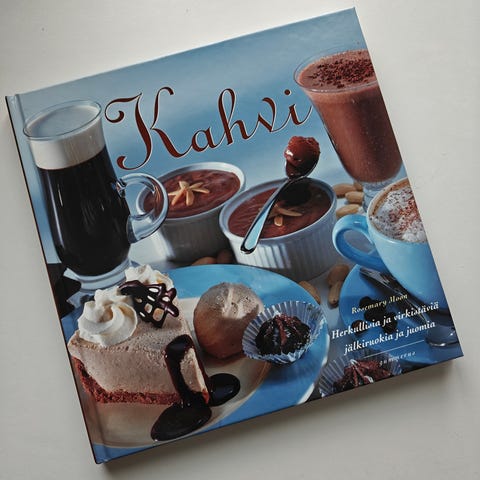 Kahvi kirja, joka käsittelee kahvin eri laatuja, valmistustapoja ja makuprofiileja. Sisältää tietoa kahvin historiasta, maisteluohjeita ja kahvin eri käyttötarkoituksia.
